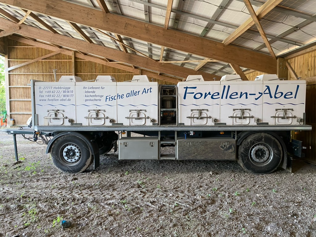 02-08-2025 Cessassion activité piscicole: vend camion Volvo F 180, 11t ptac, plateau benne alu 5m de long, 6 cuves de